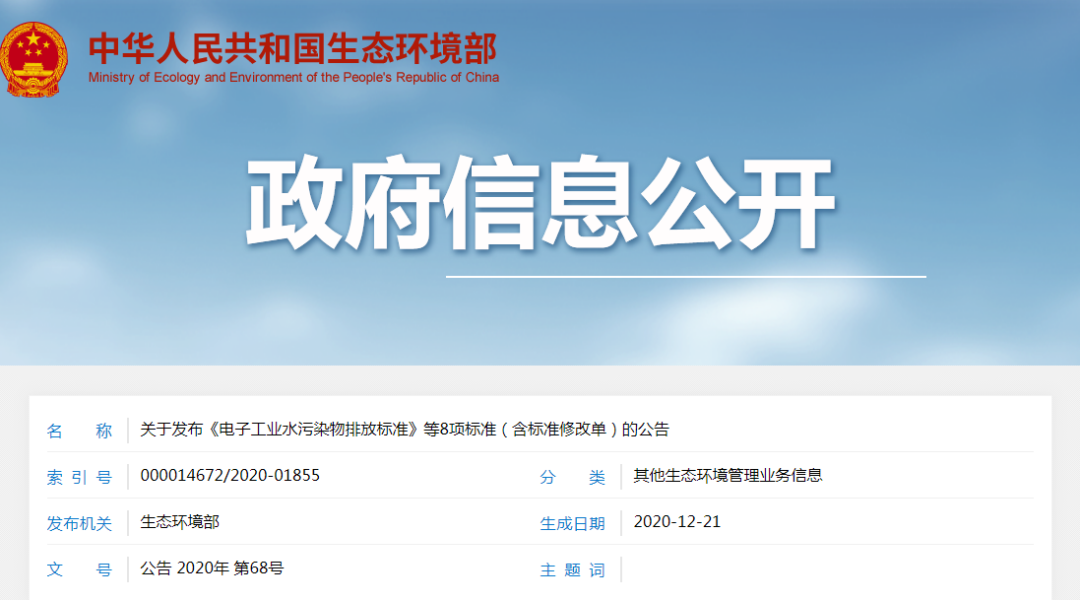 關于發(fā)布《電子工業(yè)水污染物排放標準》等8項標準(含標準修改單)的公告