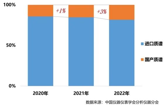 2020-2022年進(jìn)口&國產(chǎn)質(zhì)譜銷量占比變化