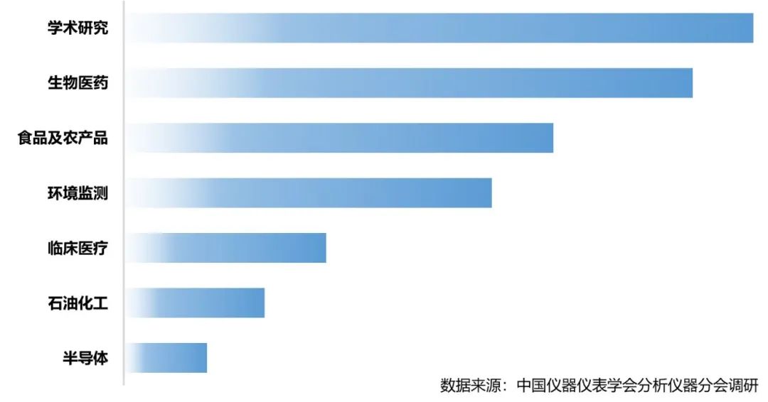 根據(jù)調(diào)研得知,2020-2022年學(xué)術(shù)研究及生物醫(yī)藥領(lǐng)域?qū)χ袊|(zhì)譜市場(chǎng)擴(kuò)容的貢獻(xiàn)最大,其中學(xué)術(shù)研究領(lǐng)域約占1/4市場(chǎng),高校、科研院所屬于各類質(zhì)譜的采購大戶,具備穩(wěn)定持續(xù)的購買力;其次是生物醫(yī)藥領(lǐng)域,藥企、CRO/CMO及第三方檢測(cè)機(jī)構(gòu)的質(zhì)譜需求持續(xù)旺盛;食品/農(nóng)產(chǎn)品檢測(cè)、環(huán)境監(jiān)測(cè)、石油化工(天然氣)、半導(dǎo)體等領(lǐng)域?qū)儆谫|(zhì)譜儀器應(yīng)用較廣的市場(chǎng)領(lǐng)域,具備非常龐大的質(zhì)譜儀器保有量。