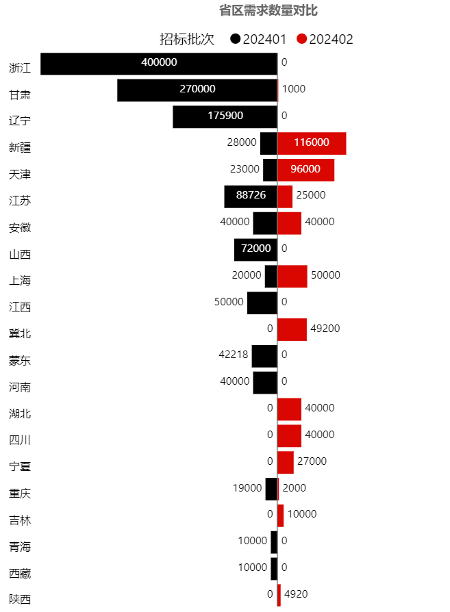 主要的需求量來(lái)自新疆、天津等省份。