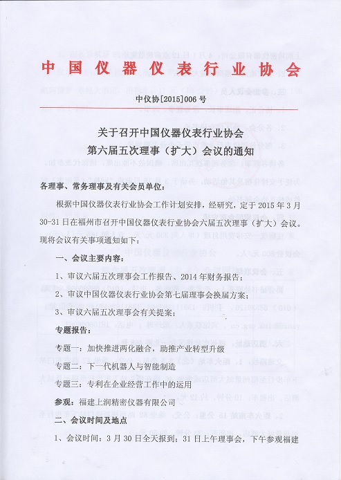 關(guān)于召開中國儀器儀表行業(yè)協(xié)會第六屆五次理事(擴大)