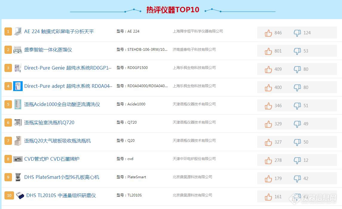 (1)對于用戶推薦的儀器,同一型號儀器的推薦用戶數(shù)量達到10個,且用戶信息真實性通過審核;