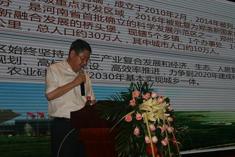 新鄉市政府黨組成員、平原示范區黨工委書記鹿建宇同志首先致辭,鹿書記熱烈祝賀峰會的召開,歡迎參會嘉賓及代表的蒞臨,并介紹了新鄉市平原示范區的概況。