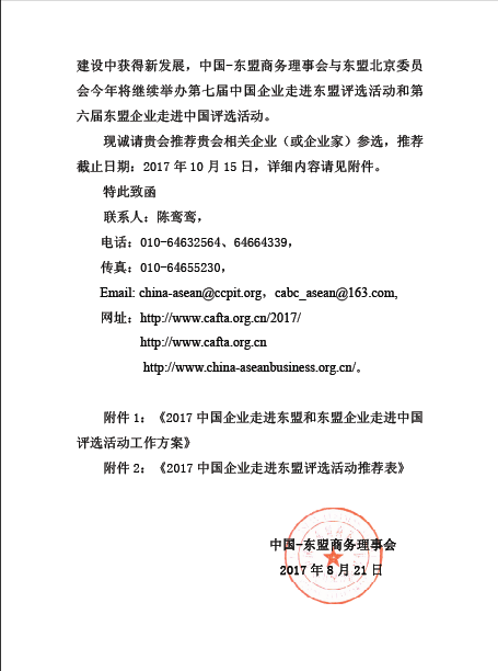 附件:2017年度中國企業(yè)走進東盟 評選活動推薦表