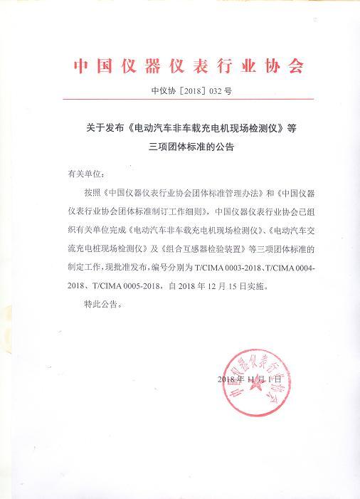 按照《中國(guó)儀器儀表行業(yè)協(xié)會(huì)團(tuán)體標(biāo)準(zhǔn)管理辦法》和《中國(guó)儀器儀表行業(yè)協(xié)會(huì)團(tuán)體標(biāo)準(zhǔn)制訂工作細(xì)則》,中國(guó)儀器儀表行業(yè)協(xié)會(huì)已組織有關(guān)單位完成《電動(dòng)汽車(chē)非車(chē)載充電機(jī)現(xiàn)場(chǎng)檢測(cè)儀》、《電動(dòng)汽車(chē)交流充電樁現(xiàn)場(chǎng)檢測(cè)儀》及《組合互感器檢驗(yàn)裝置》等三項(xiàng)團(tuán)體標(biāo)準(zhǔn)的制定工作,現(xiàn)批準(zhǔn)發(fā)布,編號(hào)分別為T(mén)/CIMA 0003-2018、T/CIMA 0004-2018、T/CIMA 0005-2018,自2018年12月15日實(shí)施。