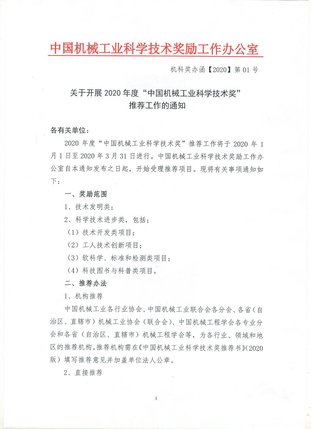 附件:關于開展中國機械工業(yè)科學技術獎推薦工作的通知