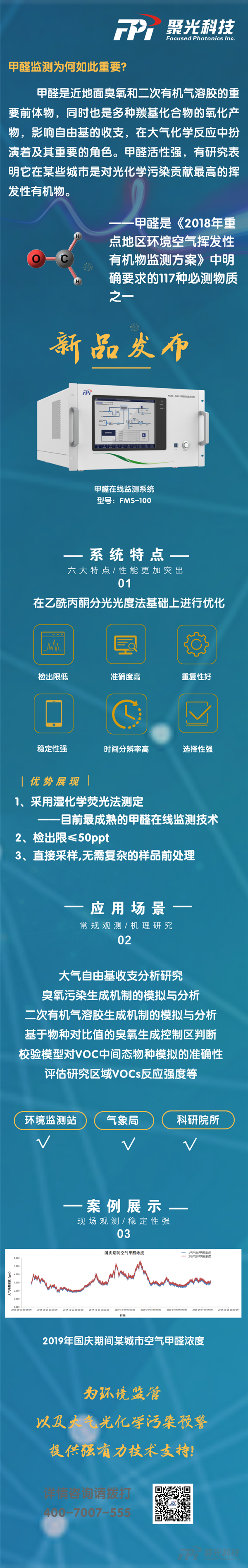聚光科技(杭州)股份有限公司重磅推出甲醛在線監測系統(型號:FMS-100),為環境監管以及大氣光化學污染預警再添一款利器!