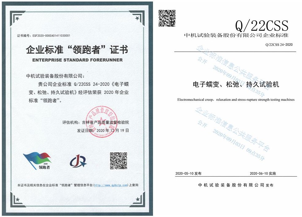 近日,由國家市場監督管理總局指導、中國標準化研究院、企業標準“領跑者”聯盟主辦的2020年企業標準“領跑者”大會在北京召開,會議發布了涵蓋154類產品和服務,涉及331家企業的453項標準的2020年第一批企業標準“領跑者”名單。中機試驗憑企業標準Q/22CSS 24-2020《電子蠕變、松弛、持久試驗機》榮獲2020年企業標準“領跑者”稱號。成為試驗裝備行業唯一入選的企業。