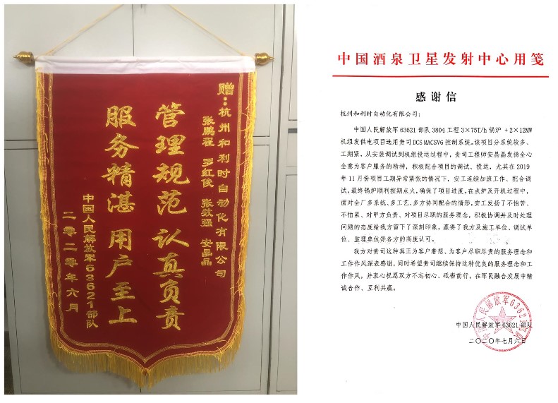 近日,杭州和利時自動化有限公司(下簡稱“杭和公司”)順利完成酒泉衛(wèi)星發(fā)射中心智慧電廠項目,獲得業(yè)主方認可和稱贊,為東風航天城辛苦奮戰(zhàn)在一線的同胞們貢獻一份力。