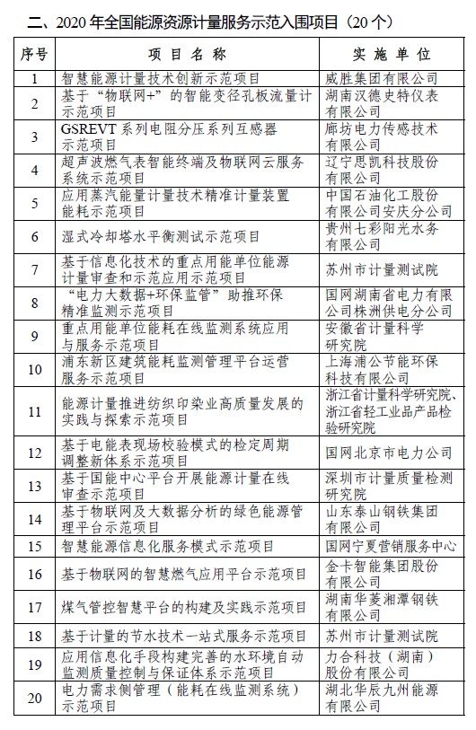 近日,根據《市場監管總局辦公廳 國家發展改革委辦公廳關于組織開展2020年度能源資源計量服務示范活動的通知》(市監計量〔2020〕94號)要求,市場監管總局辦公廳將擬入選2020年能源資源計量服務示范項目和入圍項目名單進行公示。其中,蘇州計量測試院能源計量中心的“空壓系統在線節能診斷技術服務示范項目”進入全國2020年能源資源計量服務示范項目公示目錄,全國共10個。威勝集團有限公司的“智慧能源計量技術創新示范項目”、廊坊電力傳感技術有限公司的“GSREVT 系列電阻分壓系列互感器示范項目”、蘇州市計量測試院的“基于信息化技術的重點用能單位能源計量審查和示范應用示范項目”和“基于計量的節水技術一站式服務示范項目”、力合科技( 湖南)股份有限公司的“應用信息化手段構建完善的水環境自動監測質量控制與保證體系示范項目”、金卡智能集團股份有限公司的“基于物聯網的智慧燃氣應用平臺示范項目"進入全國2020年能源資源計量服務示范入圍項目公示目錄,全國共20個。
