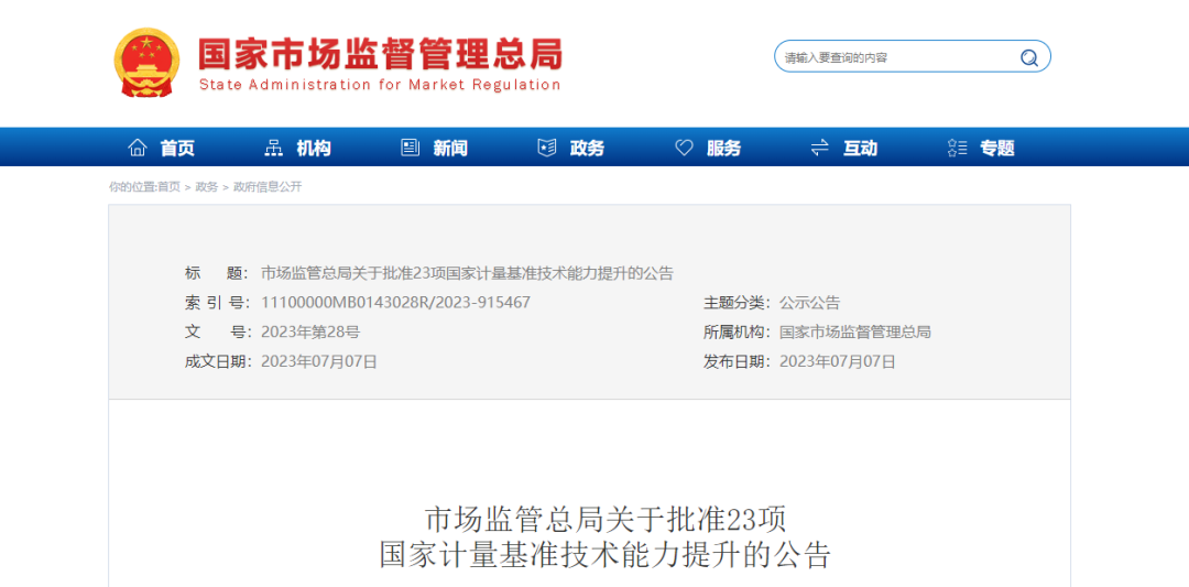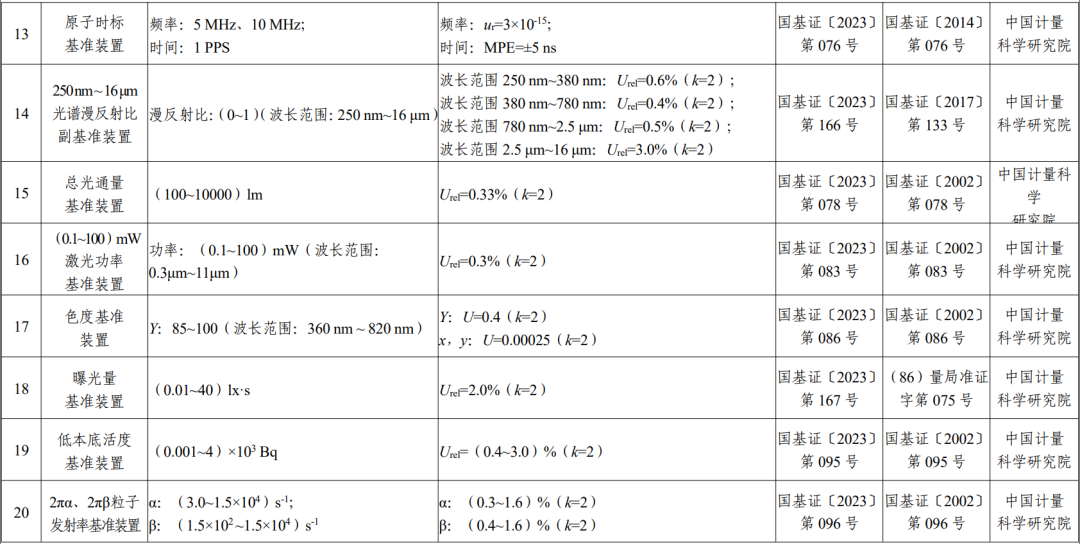 23項(xiàng)技術(shù)能力提升的國家計(jì)量基準(zhǔn)名單