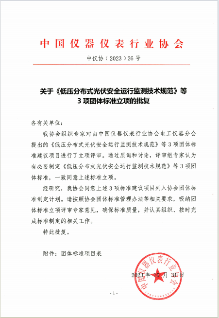 我協會組織專家對由中國儀器儀表行業協會電工儀器分會提出的《低壓分布式光伏安全運行監測技術規范》等3項團體標準建議項目進行了立項評審。通過質詢和討論,評審組專家認為有必要制定上述標準,一致同意該9項團體標準立項。