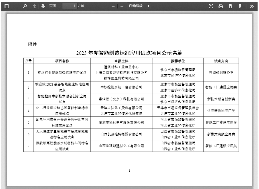 附件:2023年度智能制造標(biāo)準(zhǔn)應(yīng)用試點項目公示名單