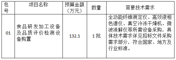項(xiàng)目名稱:食品研發(fā)加工設(shè)備及品質(zhì)評(píng)價(jià)檢測(cè)設(shè)備購(gòu)置