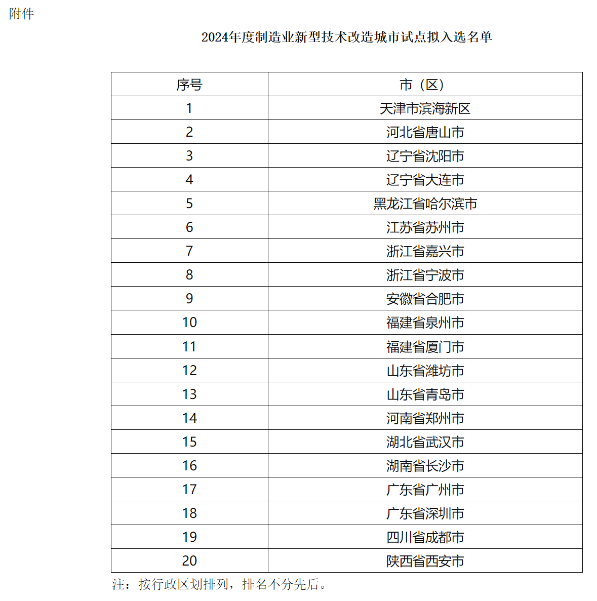 4月29日,工信部公示2024年度制造業(yè)新型技術(shù)改造城市試點擬入選名單,共計20個,公示期為2024年4月29日-2024年5月9日。