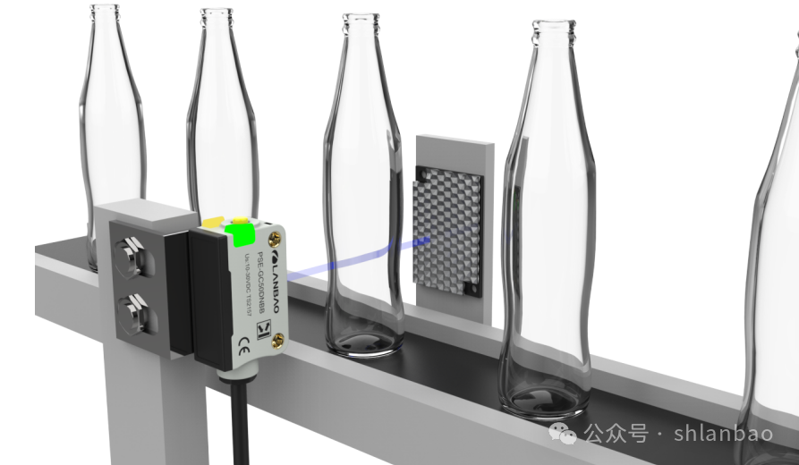 通過計數(shù)來檢查和控制產(chǎn)品流是飲料工廠對產(chǎn)品包裝的一項典型應(yīng)用。在飲料工業(yè)生產(chǎn)中,制造瓶子時將生產(chǎn)出多樣的產(chǎn)品變型,其輸送過程的循環(huán)速率較高,為實(shí)現(xiàn)快速流暢的運(yùn)輸,需要可靠地識別瓶子,由于它們的形狀和表面情況多變、傳輸速度較高、光學(xué)特性復(fù)雜,實(shí)現(xiàn)穩(wěn)定準(zhǔn)確檢測尤為困難。蘭寶PSE-GC50系列光電傳感器可靠檢測透明物體,無論是薄膜、托盤、玻璃瓶、塑料瓶還是薄膜斷裂,PSE-GC50都能可靠地進(jìn)行識別,不漏檢,對各種透明物體穩(wěn)定檢測,大大提升流水線工作效率。
