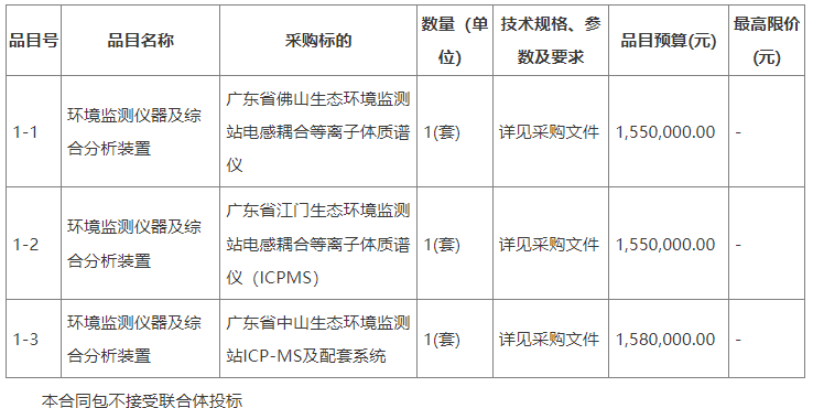 合同包1(2024年電感耦合等離子體質譜儀及配套系統帶量采購項目):