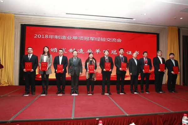 2018年12月18日,工業(yè)和信息化部、中國(guó)工業(yè)經(jīng)濟(jì)聯(lián)合會(huì)在京組織召開了制造業(yè)單項(xiàng)冠軍經(jīng)驗(yàn)交流會(huì)。工業(yè)和信息化部原部長(zhǎng)、中國(guó)工業(yè)經(jīng)濟(jì)聯(lián)合會(huì)會(huì)長(zhǎng)李毅中,工業(yè)和信息化部副部長(zhǎng)王江平等出席了會(huì)議,并為制造業(yè)單項(xiàng)冠軍企業(yè)頒發(fā)了證書。