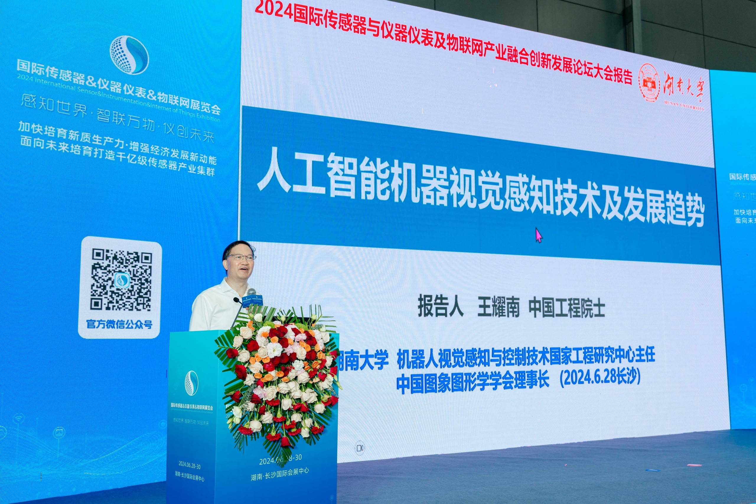 中國工程院院士、機器人視覺感知與控制技術(shù)國家工程實驗室主任、湖南大學教授王耀南,中國計量協(xié)會理事長吳方迪,中國儀器儀表行業(yè)協(xié)會秘書長李躍光,湖南省歐美同學會會長、湖南省政協(xié)原副主席、九三學社湖南省委會原主委張大方,九三學社湖南省委員會主委、長沙學院院長陳赤平,湖南省工業(yè)和信息化廳二級巡視員李紅亮,湖南省科學技術(shù)協(xié)會二級巡視員喻澤紅,工信部賽迪研究院物聯(lián)網(wǎng)中心主任韓允,九三學社湖南省委副主委李少陽,湖南省工業(yè)和信息化行業(yè)事務中心主任鄧光亮,中國電子科技集團第48研究所副所長薛勇,湖南省工業(yè)和信息化廳人工智能與數(shù)字產(chǎn)業(yè)處副處長許文琳,湖南省儀器儀表學會理事長,湖南科技大學副校長趙前程,湖南省傳感器產(chǎn)業(yè)促進會會長 王定曉會長,湖南省儀器儀表行業(yè)協(xié)會會長文勝等嘉賓及企業(yè)家、參展商等近300人出席了大會。