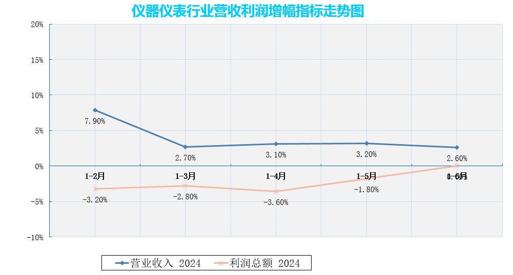 摘要:27日,國家統計局發布最新數據,1—6月份,儀器儀表制造業營業收入4698.9億元,同比增長2.6%,實現利潤總額447.4億元,同比“零增長”(1-5月利潤總額同比增幅為-1.8%)。
