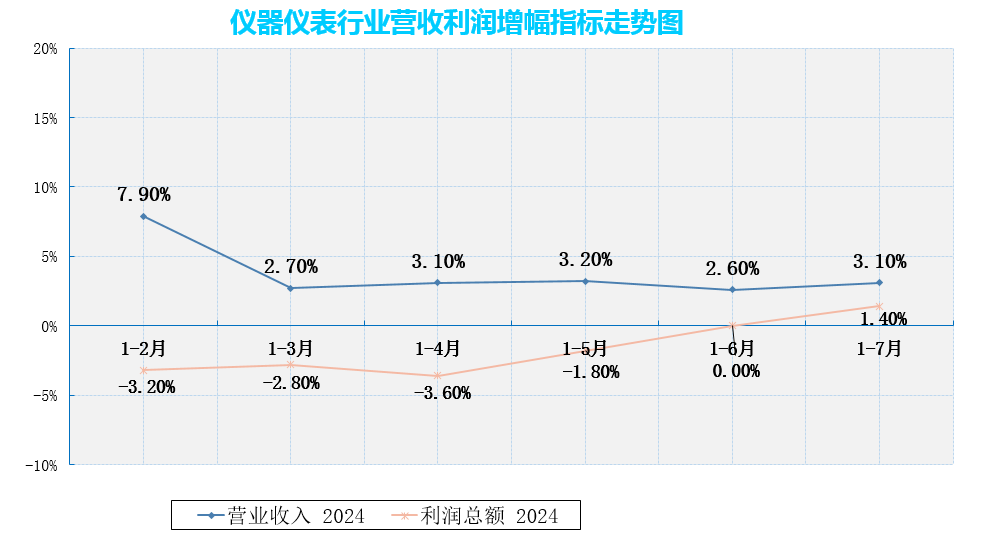 國家統(tǒng)計(jì)局發(fā)布最新數(shù)據(jù),1—7月份,儀器儀表制造業(yè)營業(yè)收入5527.3億元,同比增長3.1%,實(shí)現(xiàn)利潤總額533.3億元,同比增長1.4%(1-6月利潤總額同比增幅為0%),整體而言,儀器儀表制造業(yè)企業(yè)利潤有所改善。