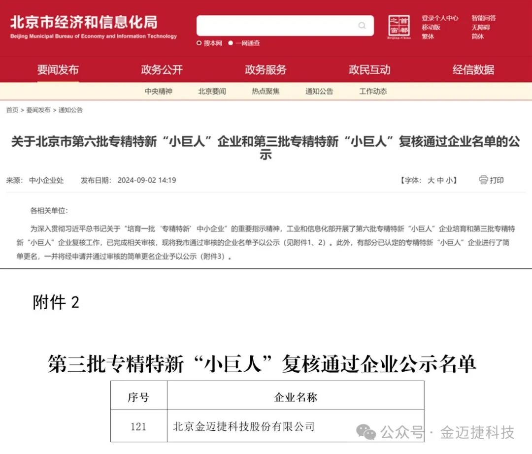 近日,國(guó)家工業(yè)和信息化部開展了第三批專精特新“小巨人”企業(yè)復(fù)核和第六批專精特新“小巨人”企業(yè)培育工作。金邁捷于2021年榮獲國(guó)家專精特新“小巨人”企業(yè)榮譽(yù)稱號(hào),三年來憑借卓越的創(chuàng)新實(shí)力和穩(wěn)健的發(fā)展態(tài)勢(shì),成功通過復(fù)核,再次榮獲國(guó)家級(jí)專精特新“小巨人”企業(yè)稱號(hào)。
