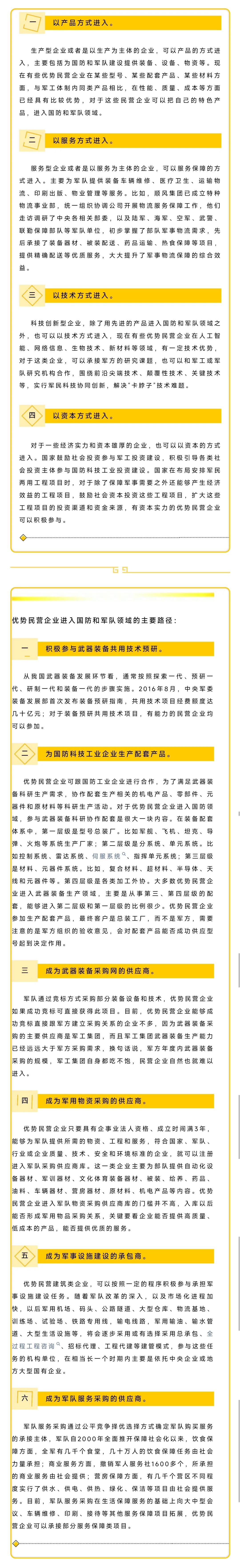 優(yōu)勢民營企業(yè)以什么樣的方式進入國防和軍隊建設領域,應當根據(jù)企業(yè)自身的實際具體情況具體分析,注重發(fā)揮自己的優(yōu)勢和特長,選擇相應的方式進入,具體講,可以從產(chǎn)品、服務、技術和資本等方式進入。