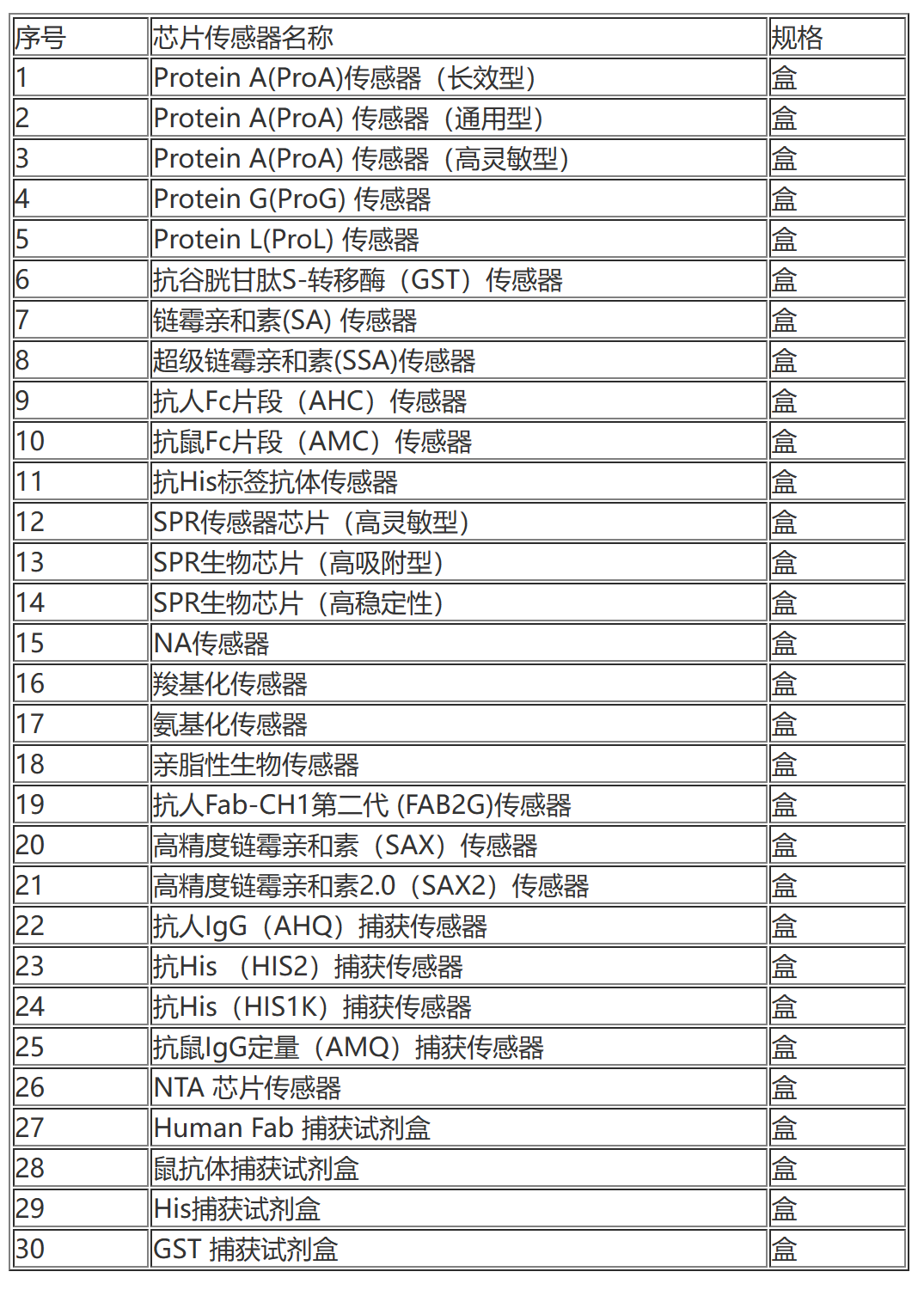 值得留意的是,本次采購的貨物表面等離子共振分子互作儀對配套的40個芯片試劑盒列出了詳細清單,以滿足用戶依據(jù)研究課題方向自由組合的需求。