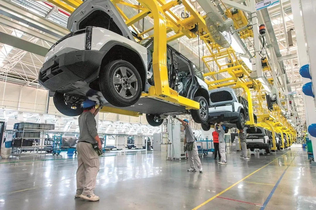 在蕪湖市某新能源汽車生產(chǎn)車間里,工人在進行組裝生產(chǎn)作業(yè)。