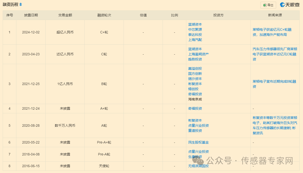 萊頓電子成立于2009年9月,是一家汽車壓力傳感器廠商,專注于壓力傳感器的研發(fā)與制造。經(jīng)過十余年的潛心研發(fā)與市場拓展,該公司已成為中國極少數(shù)掌握涵蓋微壓至超高壓全量程范圍的工藝技術(厚膜、MEMS、薄膜、硅微熔)并可以自主設計ASIC芯片的制造商,其產(chǎn)品技術指標處于國際領先水平,生產(chǎn)規(guī)模在國內(nèi)名列前茅。