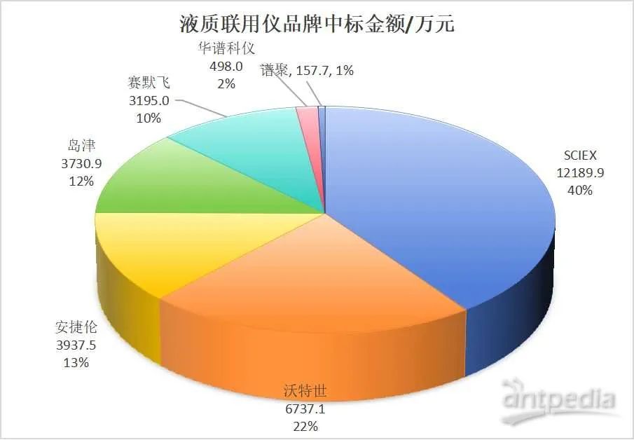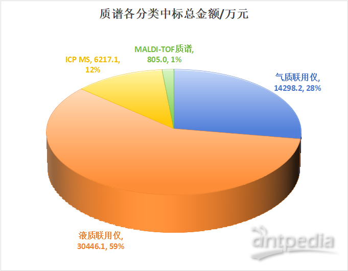 盡管氣質聯用儀在中標數量上略勝一籌,但從中標總金額來看,液質聯用儀以超過3億元的中標金額占據了質譜總中標金額的59%,顯示出其在高端市場的強大競爭力。氣質聯用儀的中標金額為1.4億元,占總金額的28%,ICP MS的中標金額為6217.1萬元,MALDI-TOF質譜的中標金額為805.0萬元。