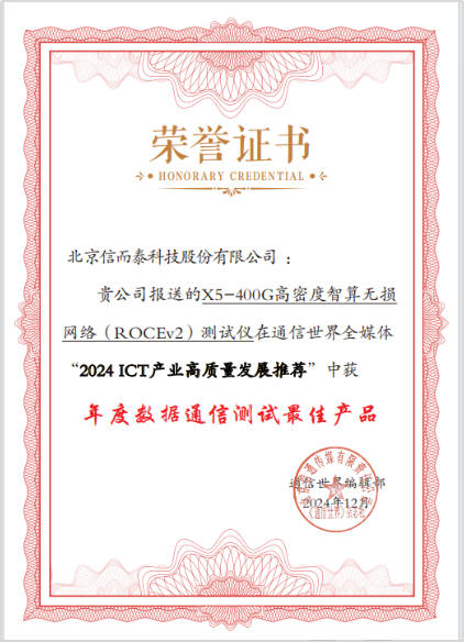 當前,ICT行業(yè)正經(jīng)歷著前所未有的變革與發(fā)展。隨著5G技術(shù)的廣泛應用、云計算的蓬勃興起以及人工智能與物聯(lián)網(wǎng)的深度融合,行業(yè)競爭愈發(fā)激烈,ICT企業(yè)逐鹿行業(yè)前沿,或攻堅技術(shù),或打磨產(chǎn)品,或拓展應用,全力探索高質(zhì)量發(fā)展之路。12月18日,2025 ICT行業(yè)趨勢年會在北京舉辦。會議期間,通信世界“2024 ICT產(chǎn)業(yè)高質(zhì)量發(fā)展推薦”正式發(fā)布。“X5-400G高密度智算無損網(wǎng)絡(luò)(ROCEv2)測試儀”入選“2024 ICT產(chǎn)業(yè)高質(zhì)量發(fā)展推薦”。