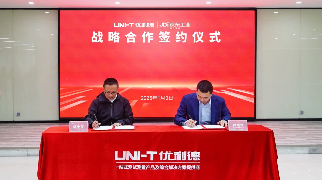 2025年1月3日,優(yōu)利德科技(中國)股份有限公司(以下簡稱“優(yōu)利德”)與北京京東數智工業(yè)科技有限公司(以下簡稱“京東工業(yè)”)在優(yōu)利德總部舉行戰(zhàn)略合作簽約儀式。優(yōu)利德董事長洪少俊、中國測試儀表營銷中心總經理汪世英、電子商務部經理施天德、中國測試儀表市場部經理吳正亮,與京東工業(yè)副總裁郭曉博、前臺采銷總監(jiān)楊浩然、KA采銷總監(jiān)杜曉東、戰(zhàn)略品牌總監(jiān)于海軍、建材業(yè)務部五金工具負責人宋艷會、采銷經理殷起東及任慶楠等出席簽約儀式并進行座談交流。