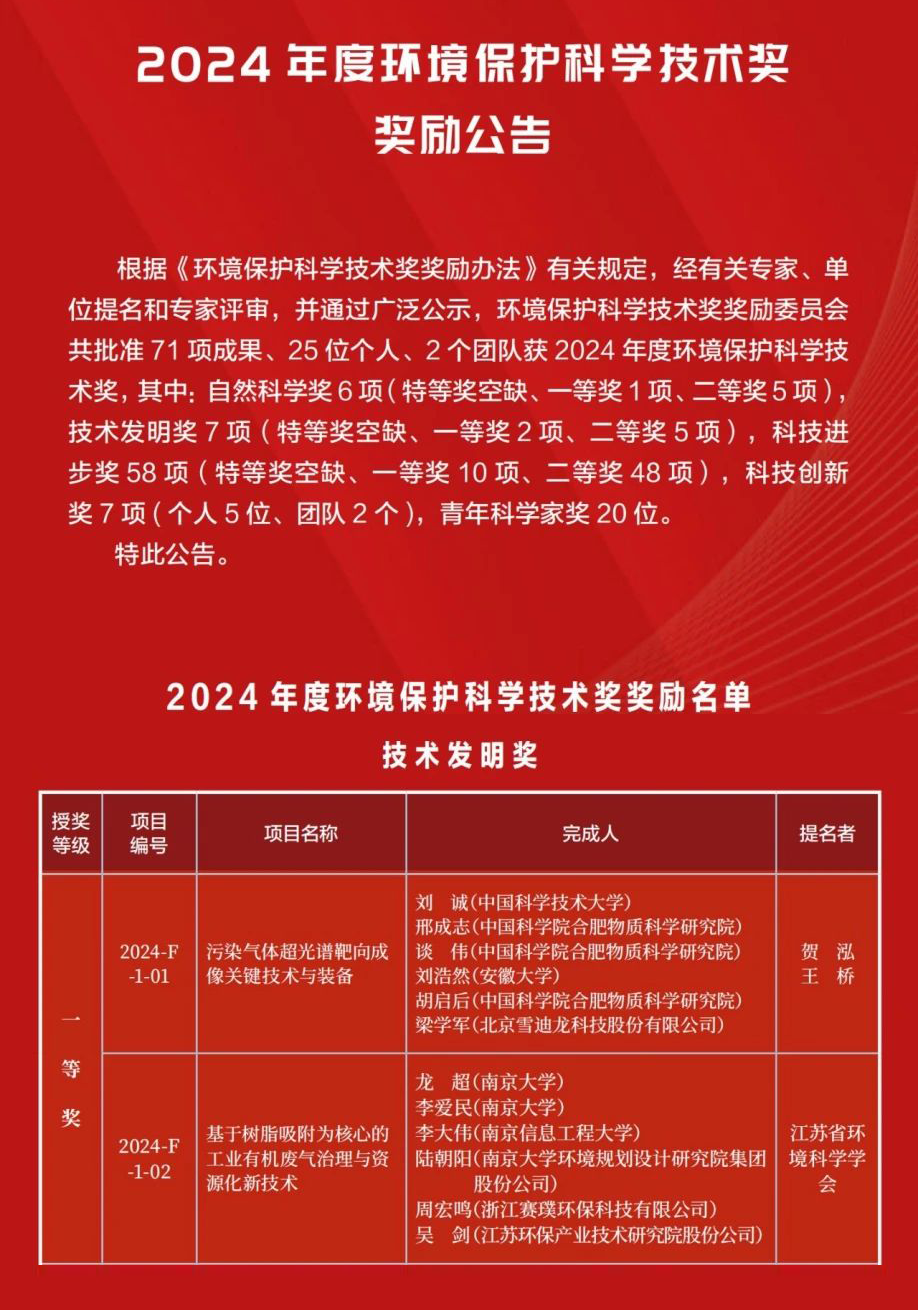 雪迪龍團隊成果榮獲“環境保護科學技術獎”技術發明獎