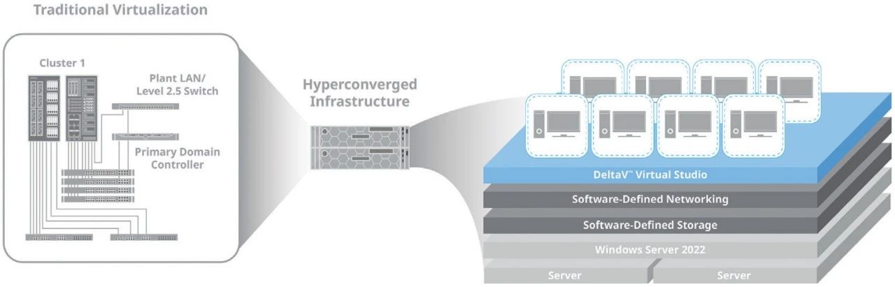 ▲圖1:超融合基礎架構(HCI)是軟件定義平臺的構建塊,結(jié)合了傳統(tǒng)和實時工作負載。艾默生的無界自動化愿景就是一種軟件定義的控制技術,該模型旨在通過消除專用控制硬件,使項目更容易執(zhí)行,更具成本效益,從而實現(xiàn)更靈活、可擴展、面向未來的運營。