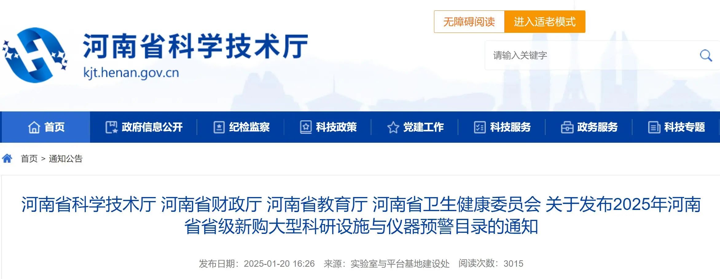 2025年河南省省級新購大型科研設施與儀器預警目錄