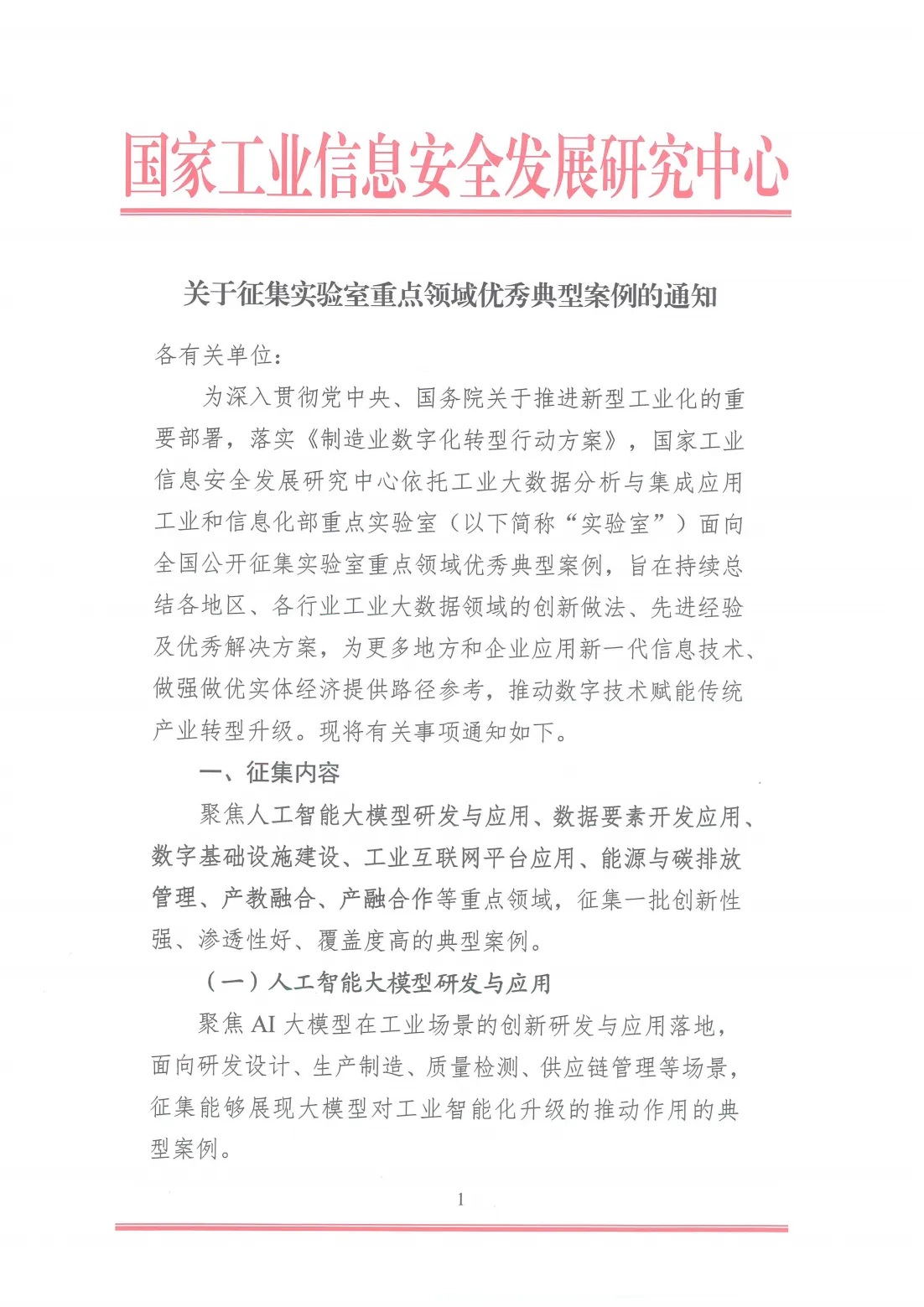 關于征集實驗室重點領域優秀典型案例的通知