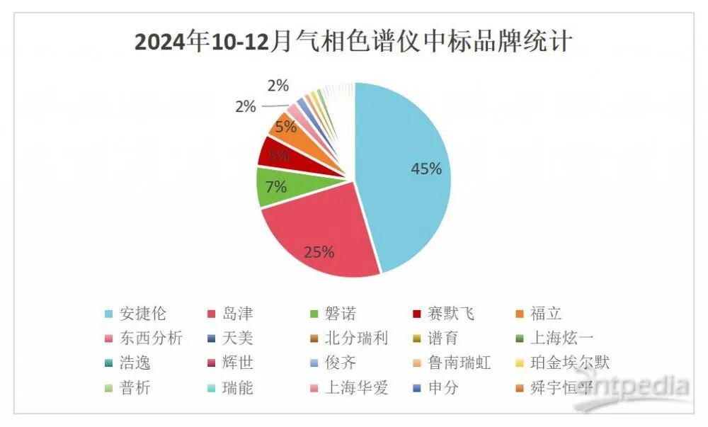 從2024年全年的中標(biāo)數(shù)據(jù)來(lái)看,國(guó)產(chǎn)品牌的氣相色譜儀總中標(biāo)占比已達(dá)到25%,即占據(jù)了市場(chǎng)的四分之一份額。這一成績(jī)不僅展現(xiàn)了國(guó)產(chǎn)品牌的強(qiáng)勁發(fā)展勢(shì)頭,也凸顯了國(guó)產(chǎn)氣相色譜儀在市場(chǎng)中日益重要的地位,未來(lái)有望進(jìn)一步突破國(guó)際品牌的市場(chǎng)壟斷,實(shí)現(xiàn)更大的發(fā)展。