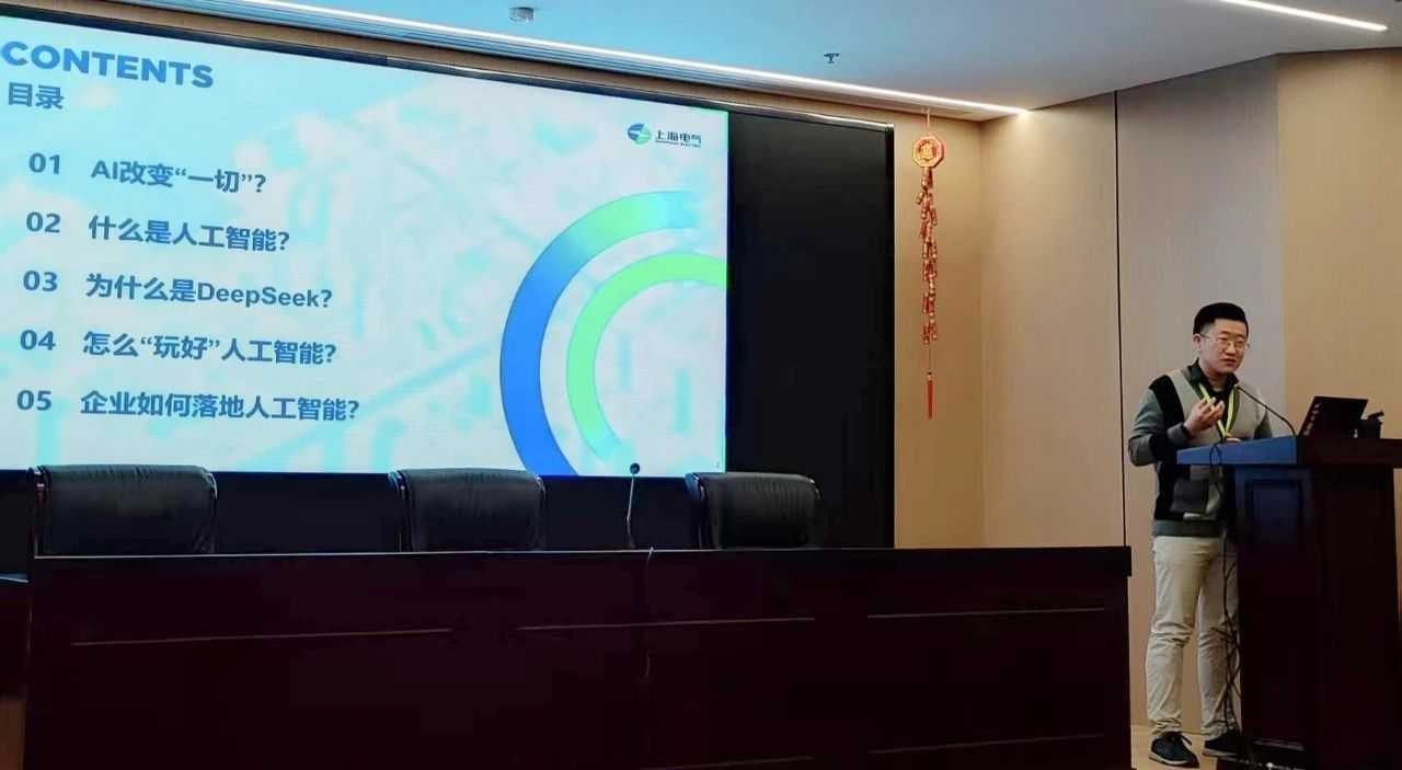 電氣數科團隊分享了人工智能技術在裝備制造業“AI+場景的多樣化創新應用,聚焦“AI+策略建議”“AI+交互查詢”“AI+自動操作深入探討在生產效率優化與供應鏈智能化管理中的價值,以及在提升效率與降低成本等方面的優勢。通過真實案例,展示了AI技術的落地實踐,演示智能生成PPT、快速撰寫方案等功能。交流分享會的成功舉辦,為上海自儀的智能化轉型提供了可行路徑,進一步激發了干部員工對AI技術的深入探索與創新動力。