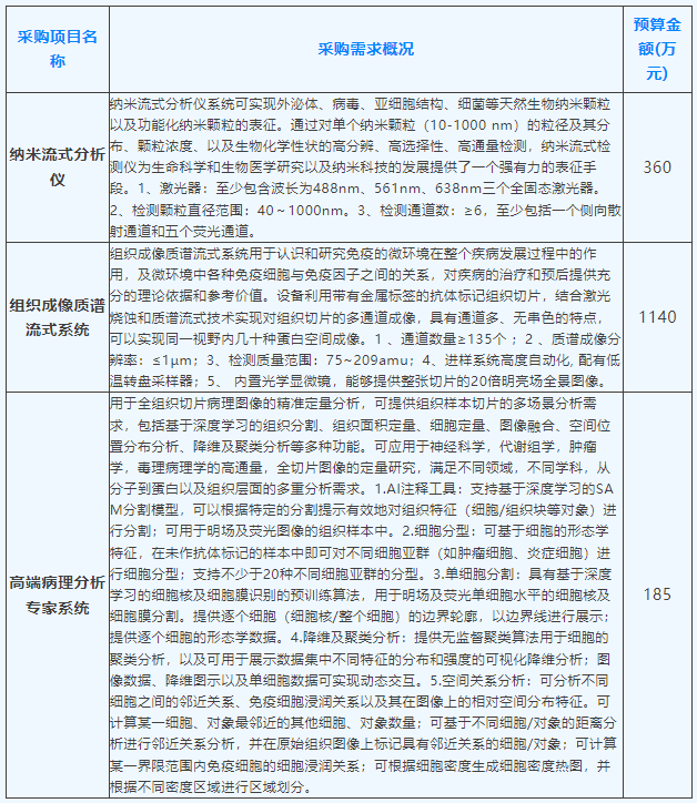 為便于供應商及時了解政府采購信息,根據《財政部關于開展政府采購意向公開工作的通知》(財庫〔2020〕10號)等有關規定,清華大學2025年4月政府采購意向有納米流式分析儀、組織成像質譜流式系統和高端病理分析專家系統,現公開如下: