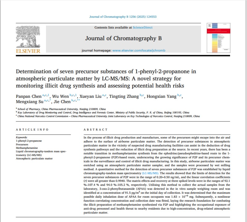 該國家級毒品實驗室基于液相色譜-三重四級桿質譜聯用儀進行科學研究,在《Journal of Chromatography B》發表論文。