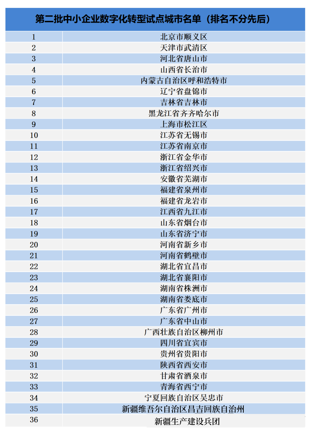 附中小企業(yè)數(shù)字化轉(zhuǎn)型城市試點前兩批名單如下: