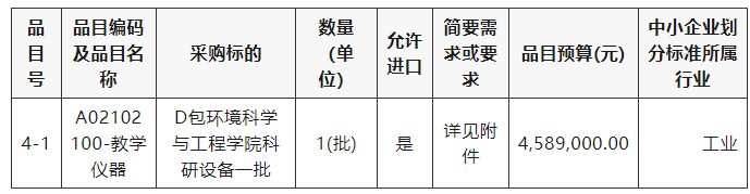 采購包4(D包環(huán)境科學與工程學院科研設備一批):