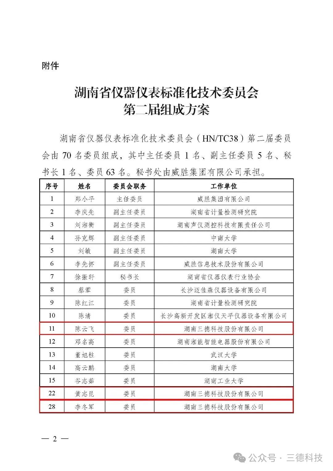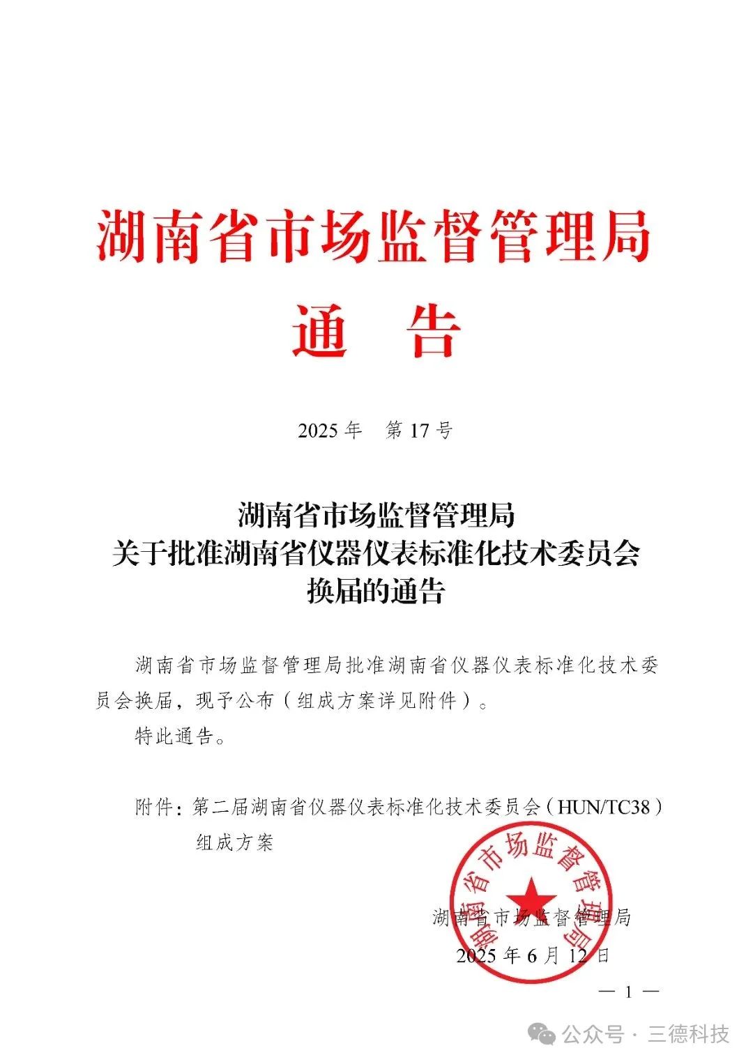近日,湖南省市場(chǎng)監(jiān)督管理局發(fā)布《關(guān)于批準(zhǔn)湖南省儀器儀表標(biāo)準(zhǔn)化技術(shù)委員會(huì)換屆的通告》,正式公布第二屆委員會(huì)70人組成名單。三德科技技術(shù)專家陳云飛、黃志昆、李冬軍三人同時(shí)獲聘為委員,高度凸顯了我司在儀器儀表領(lǐng)域的技術(shù)影響力和標(biāo)準(zhǔn)化建設(shè)參與度。