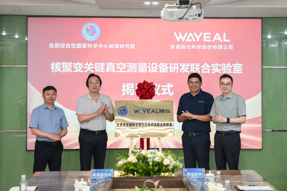 隨后,能源研究院首席科學(xué)家李建剛、常務(wù)副院長胡浩民,安徽省真空學(xué)會理事長胡建生與皖儀科技董事長臧牧共同登臺,舉行揭牌儀式。未來,雙方將圍繞核聚變裝置真空測量技術(shù)的研發(fā)與應(yīng)用開展深度合作。