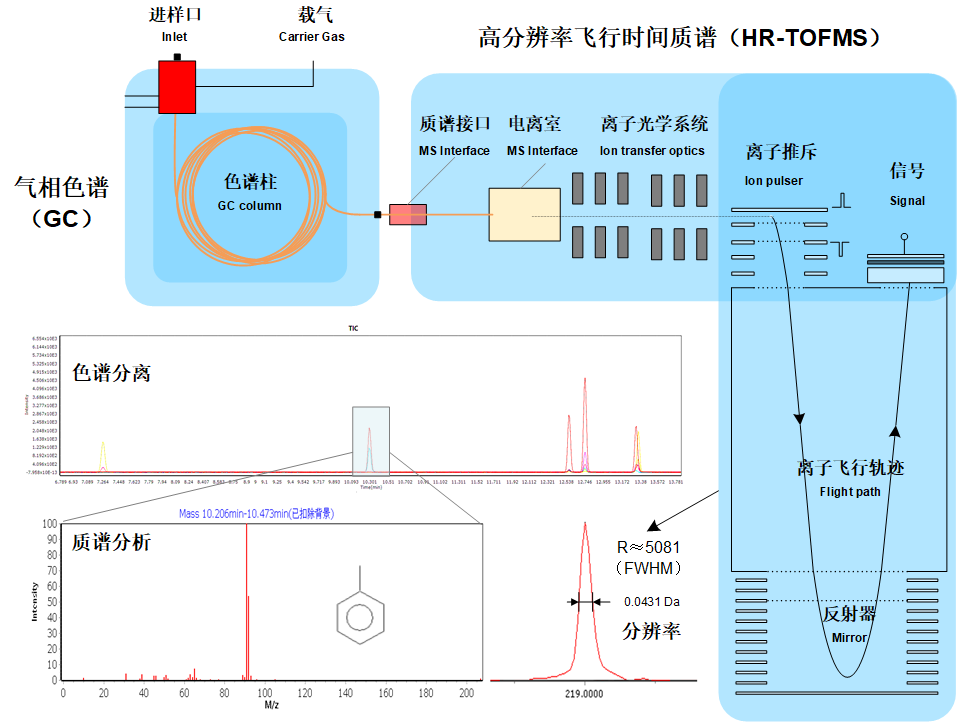氣相色譜-高分辨飛行時間質譜聯用儀集分離與高精度檢測于一體,搭載可切換離子源(光電離源和EI源),質量分辨率超過5000。該儀器利用氣相色譜高效分離復雜樣品中的組分,再通過高分辨飛行時間質譜實現精準的分子量測定和結構解析。可切換離子源的設計顯著提升了化合物的覆蓋范圍和定性能力,從而能夠對復雜樣品進行準確分析,可廣泛應用于化學、環境等研究領域。