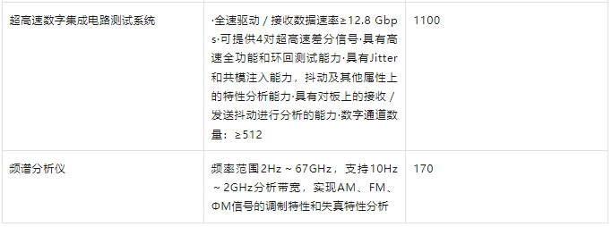 超高速數(shù)字集成電路測試系統(tǒng)(1100萬元): 核心指標(biāo)包括≥12.8 Gbps 的數(shù)據(jù)速率、≥4對超高速差分信號、強(qiáng)大的抖動(dòng)注入與分析能力、≥512通道數(shù)。這瞄準(zhǔn)了高速SerDes (如PCIe 6.0/7.0, DDR5/LPDDR5X及更高)、網(wǎng)絡(luò)處理器、高端FPGA等器件的測試挑戰(zhàn)。