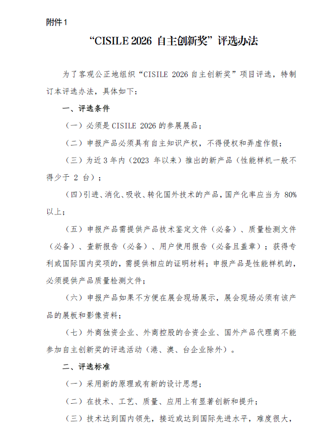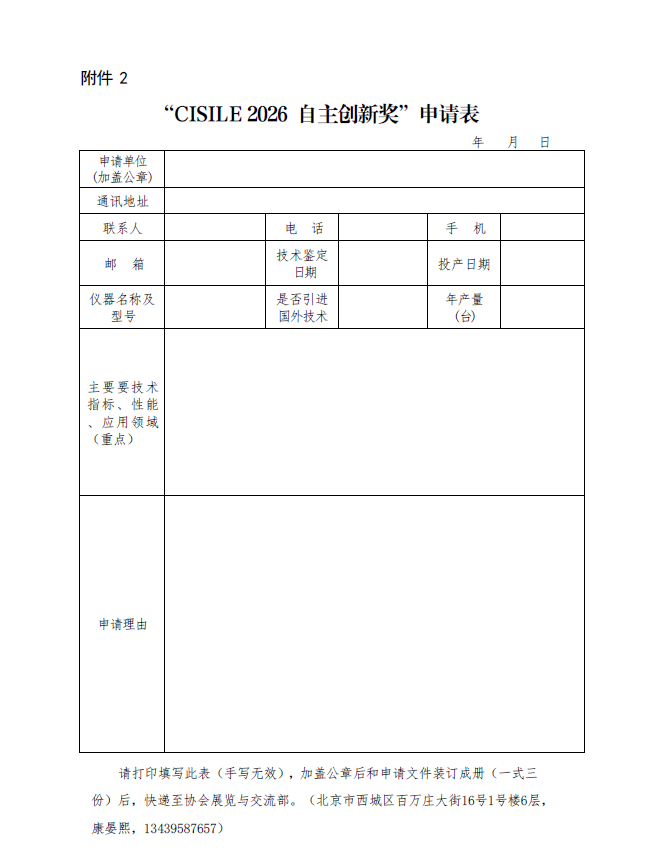 點(diǎn)擊“申請表”下載CISILE 2026 自主創(chuàng)新獎申請表