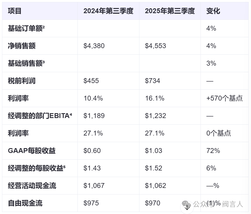 艾默生集團第三季度財報表(單位:百萬美元)
