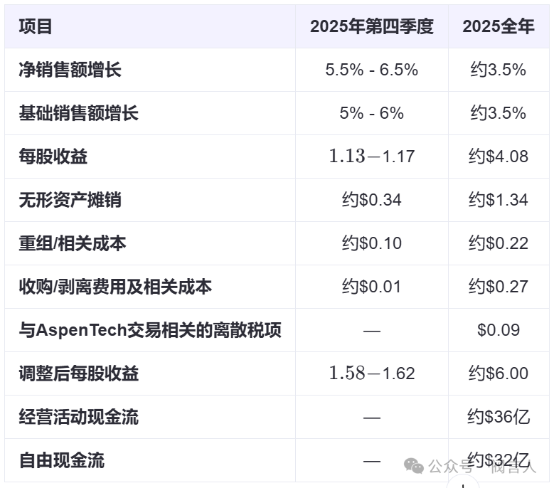 2025年展望下表總結(jié)了2025財年的指導(dǎo)框架。凈銷售額和基礎(chǔ)銷售額約3.5%的增長指引反映了艾默生集團對定價策略的最新預(yù)期,因關(guān)稅成本影響已有所降低。